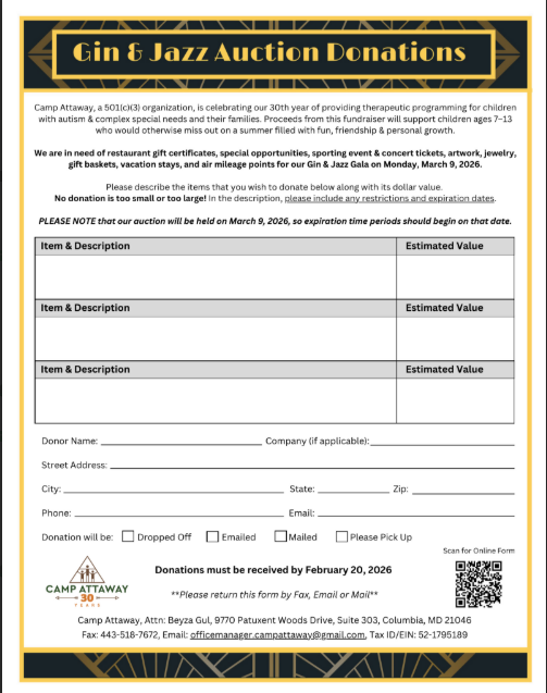 Camp Attaway, a 501(c)(3) organization, is celebrating our 30th year of providing therapeutic programming, including our award-winning therapeutic summer camp, for children with autism & complex special needs. Proceeds from this fundraiser will support our therapeutic programming for families and children 7-13 years old who would otherwise miss out on a summer filled with fun, friendship & personal growth.